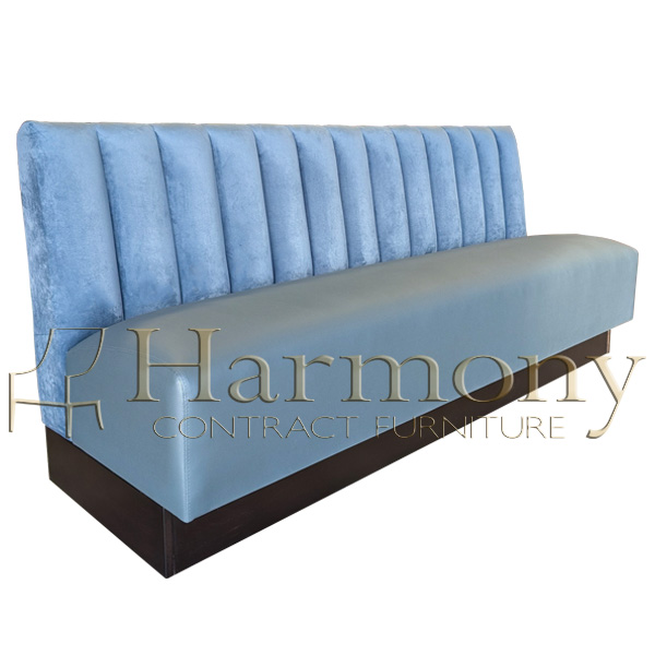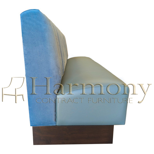 All booths & banquettes can be custom made to meet your design requirements. Modifiable specs include: height and length, backrest detail, closed vinyl kick base, closed wood kick base, solid wood legs, metal legs, buttons, nail trim, fabric (C.O.M. and C.O.L.), foot rails, privacy screens, incorporating electrical to the unit, etc. Use your imagination! We are experts in making your vision a reality.