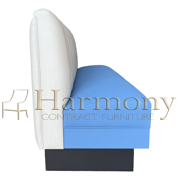 All booths & banquettes can be custom made to meet your design requirements. Modifiable specs include: height and length, backrest detail, closed vinyl kick base, closed wood kick base, solid wood legs, metal legs, buttons, nail trim, fabric (C.O.M. and C.O.L.), foot rails, privacy screens, incorporating electrical to the unit, etc. Use your imagination! We are experts in making your vision a reality.